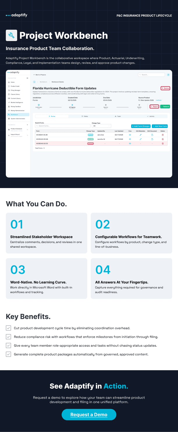 Modernizing insurance product development with AI-powered tools and intelligent automation.